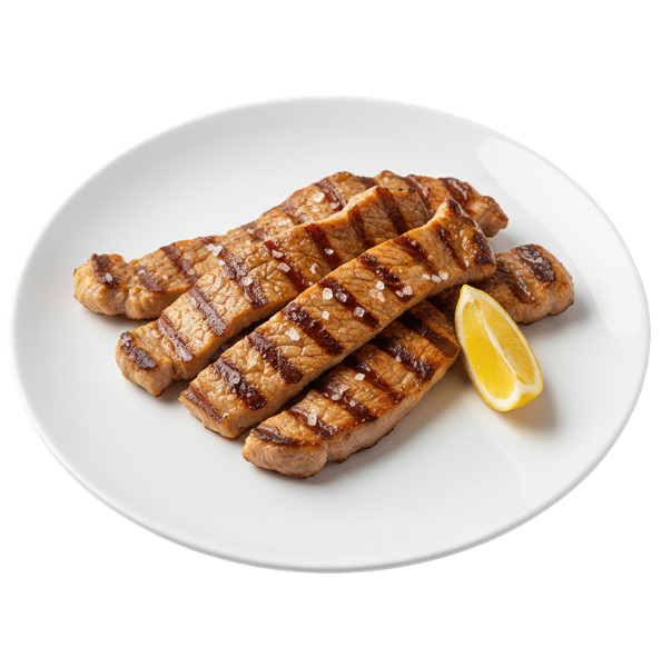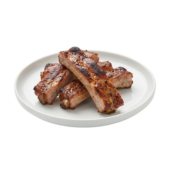 Tiras de entrecosto suculentas com crosta caramelizada, preparadas na grelha com especiarias tradicionais. O equilíbrio perfeito entre a carne tenra e o aroma fumado.